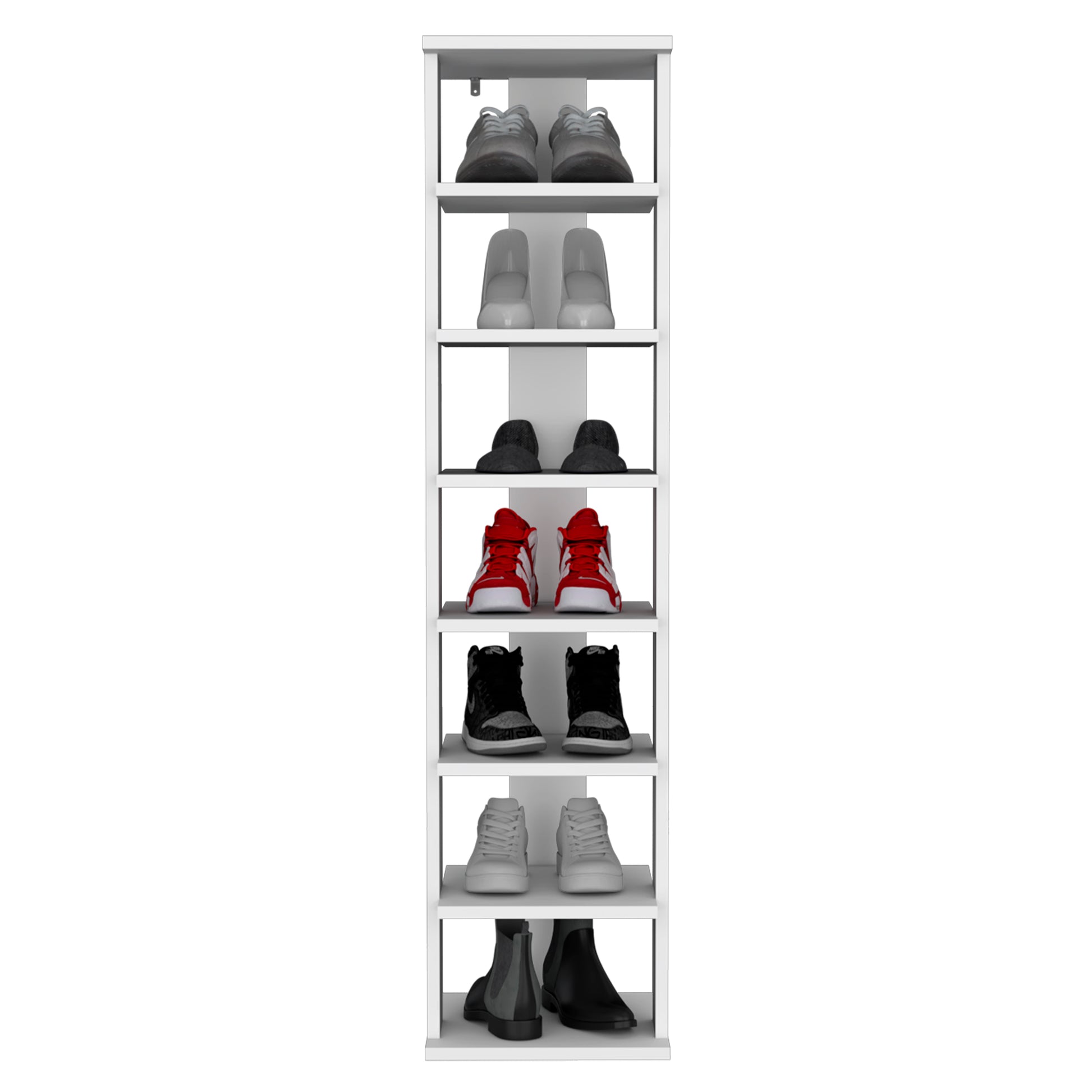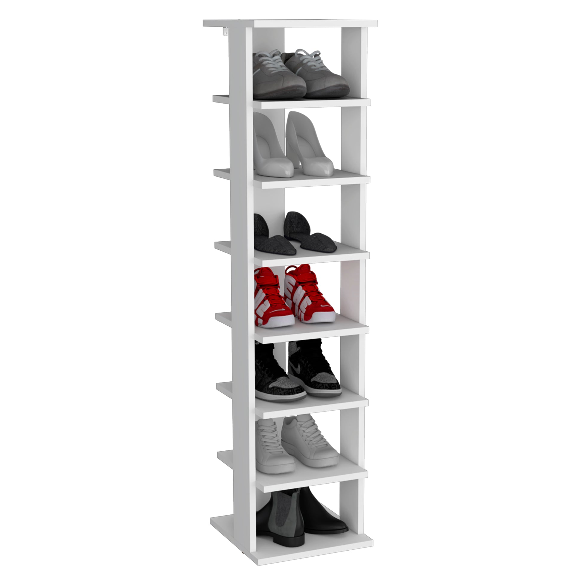 Odesto Shoe Rack Tower: Maximize small spaces with this 8-tier vertical storage solution. Standing at 48.7" high, it’s perfect for entryways, closets, or corners. Each 6.5" high shelf accommodates various shoe sizes—keeping your favorite pairs organized and accessible. Stackable or standalone, it’s versatile and cable-friendly. Crafted for style and ease, assemble it hassle-free in just 20 minutes. Say hello to tidy shoe storage!