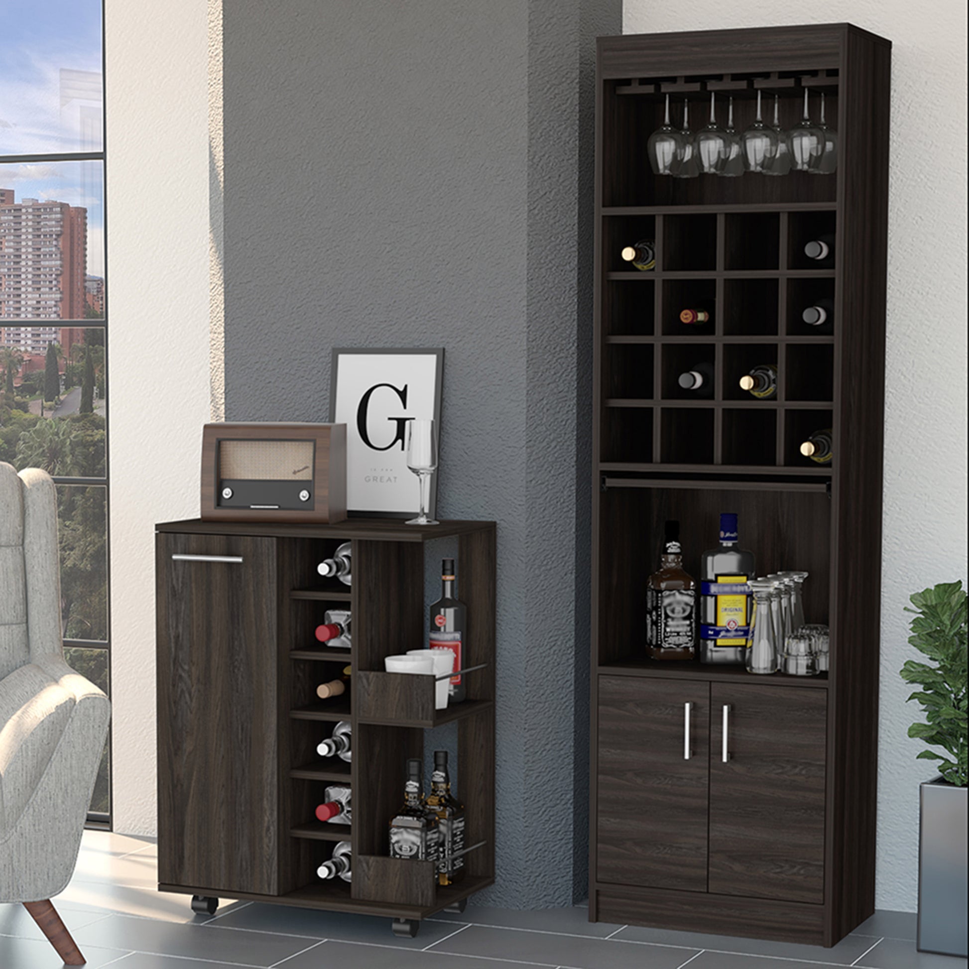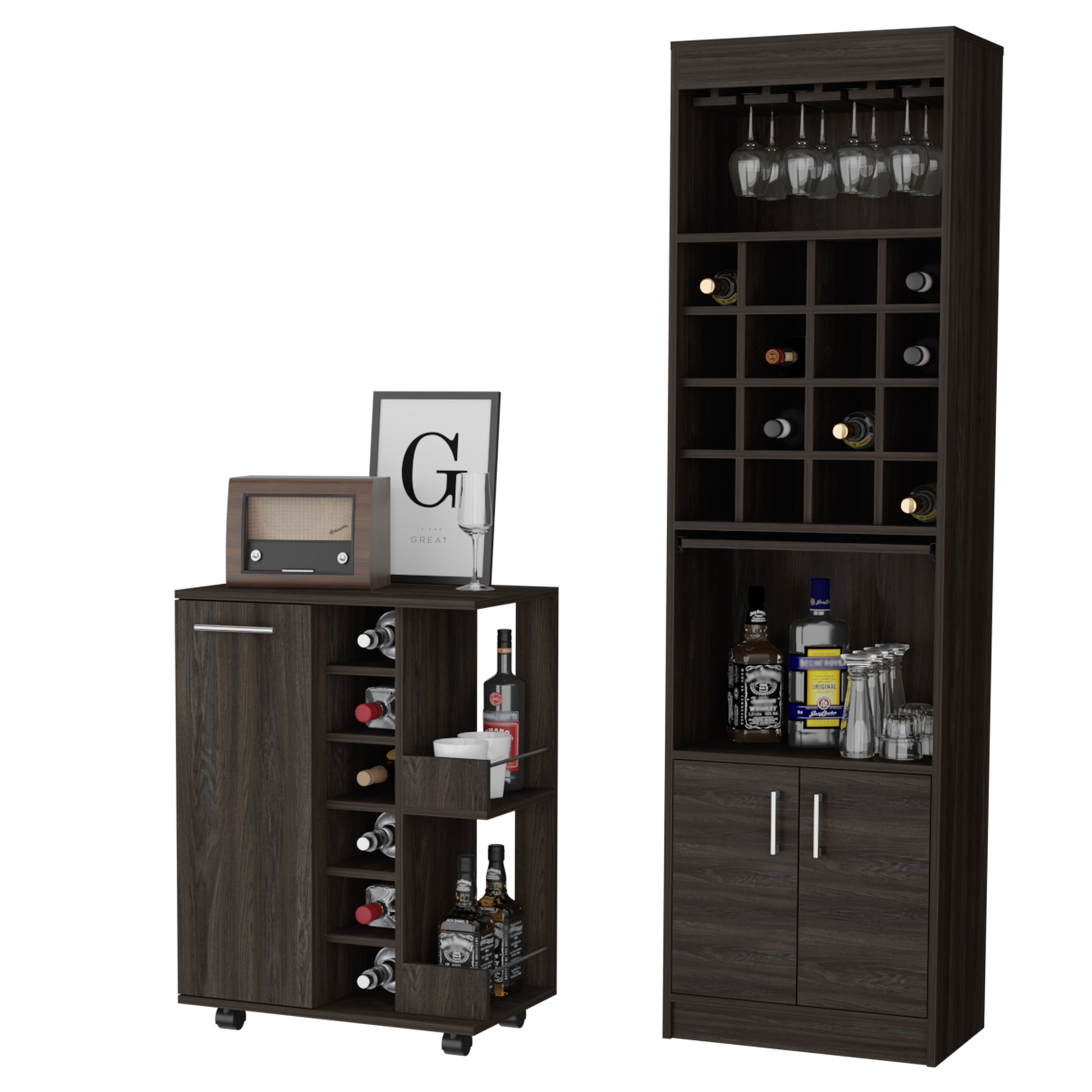 Pasadena 2 Piece Living Room Set, Bar Cabinet + Bar Cart, Carbon Espresso Finish