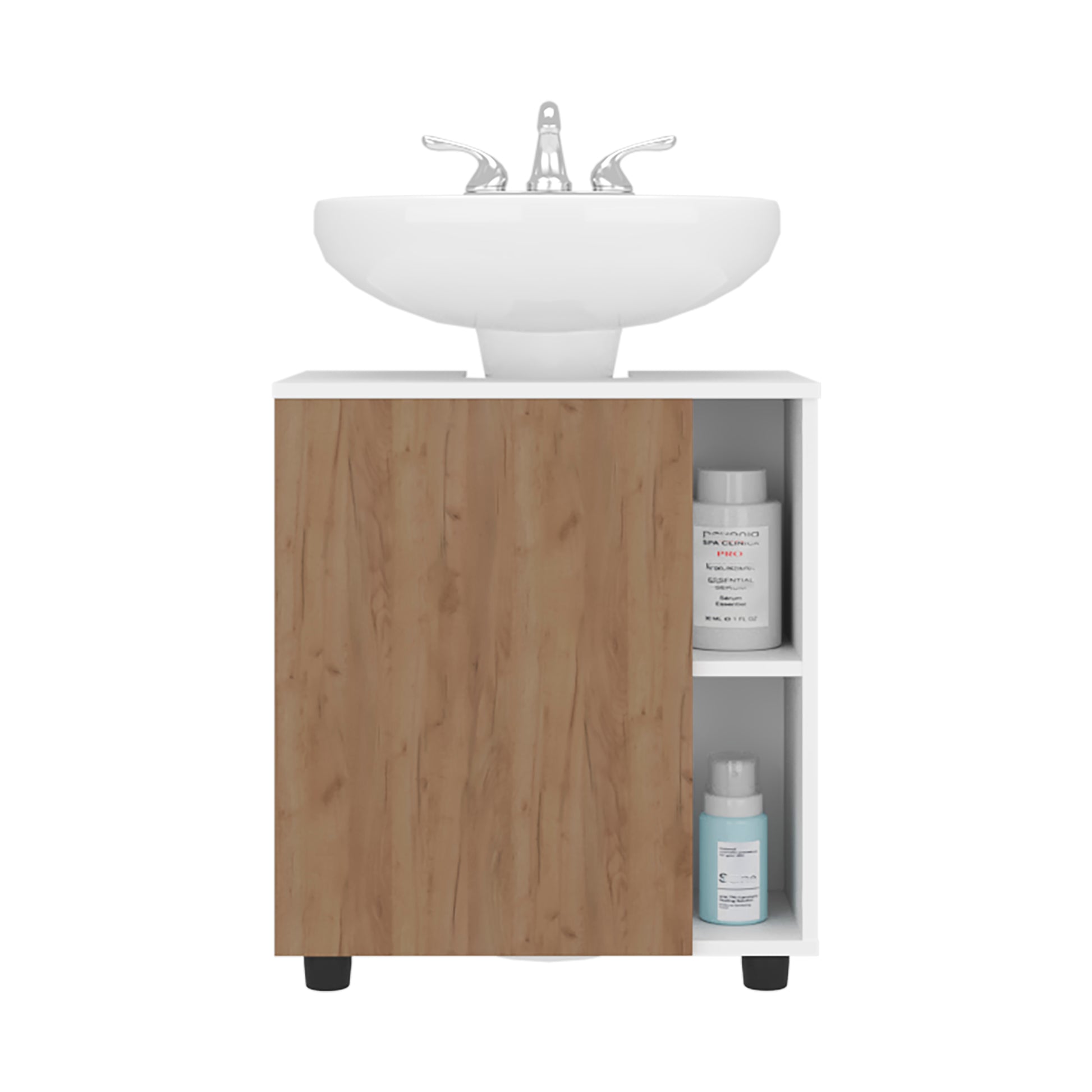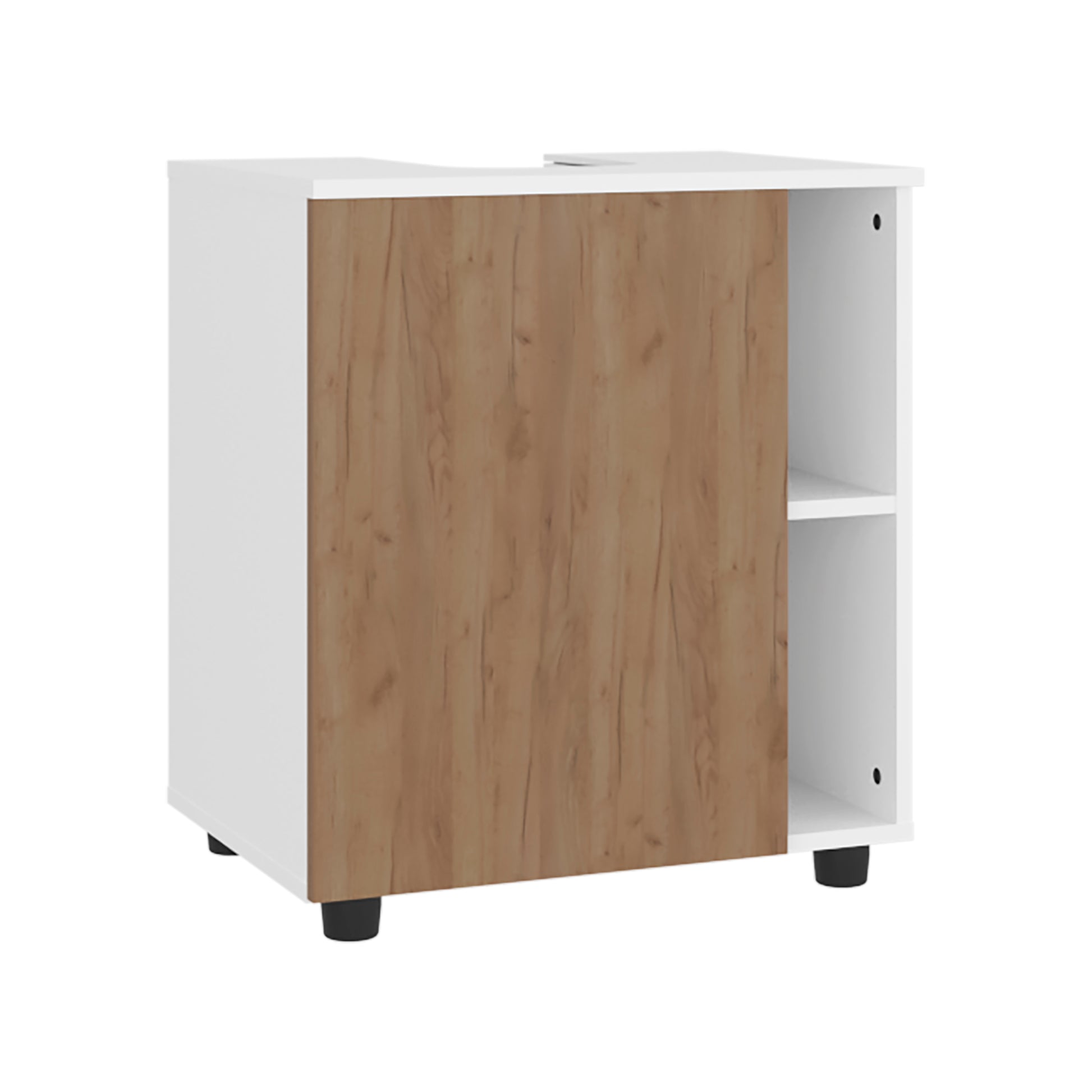 Pascuale Two Side Shelves Under Sink Cabinet with One Doors, Cut-Out Back, Compact 22” Freestanging Bathroom Storage