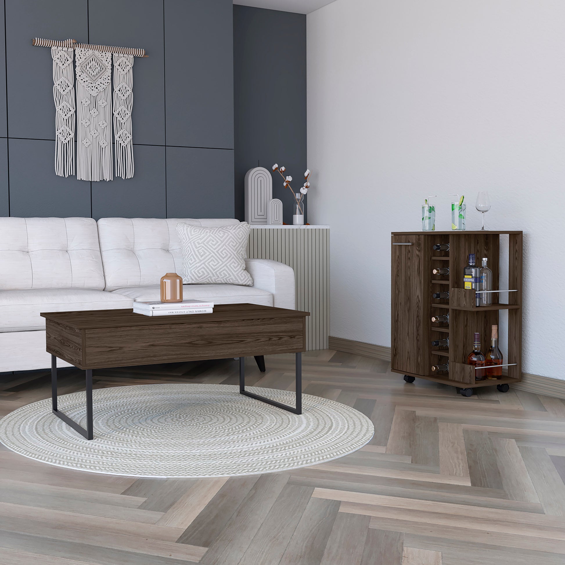Stockton 2 Piece Living Room Set, Bar Cart + Coffee Table, Dark Brown Finish