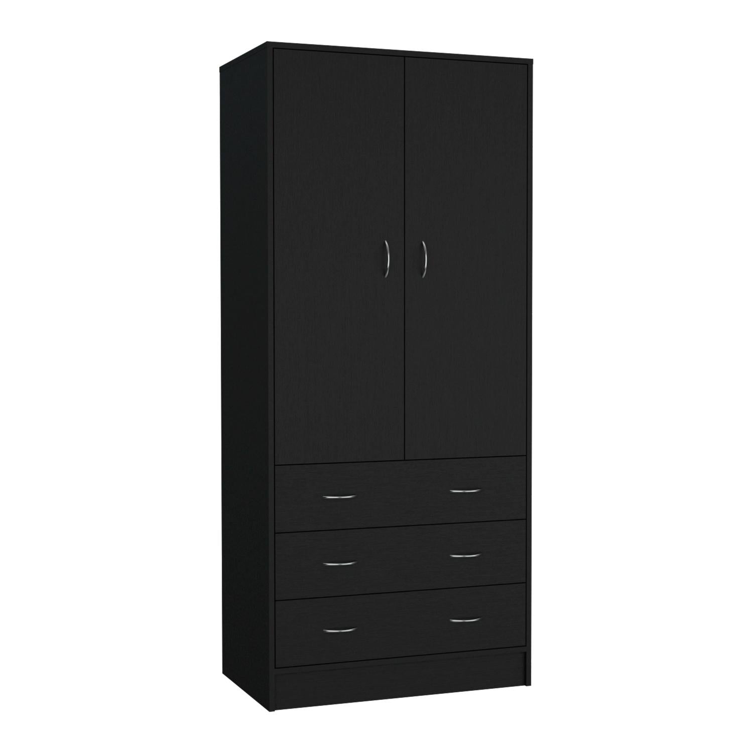 The Taly Armoire is an elegant and functional solution for storing your clothes and accessories. This armoire is made of manufactured wood, which guarantees its durability over time. It is available in two colors: black and white, allowing you to choose the one that best suits your style and decor.Measuring 70.9 "H x 30.9 "Wx 19.0 "D this cabinet offers ample storage space. It features two double doors that give you easy access to your clothing and accessories, as well as two additional drawers to organize your belongings neatly.In addition, the Taly Armoire is equipped with a hanging rod, making it easy to organize and access your hanging garments. Whether you place it in your bedroom, dressing room or any other room, this armoire combines style and functionality to help you keep your clothes organized and in good condition.