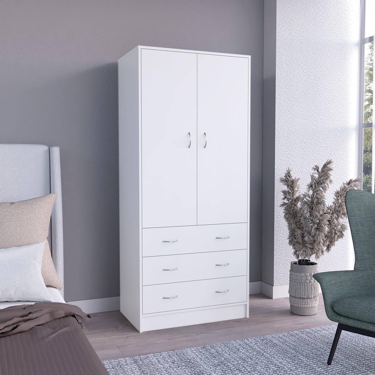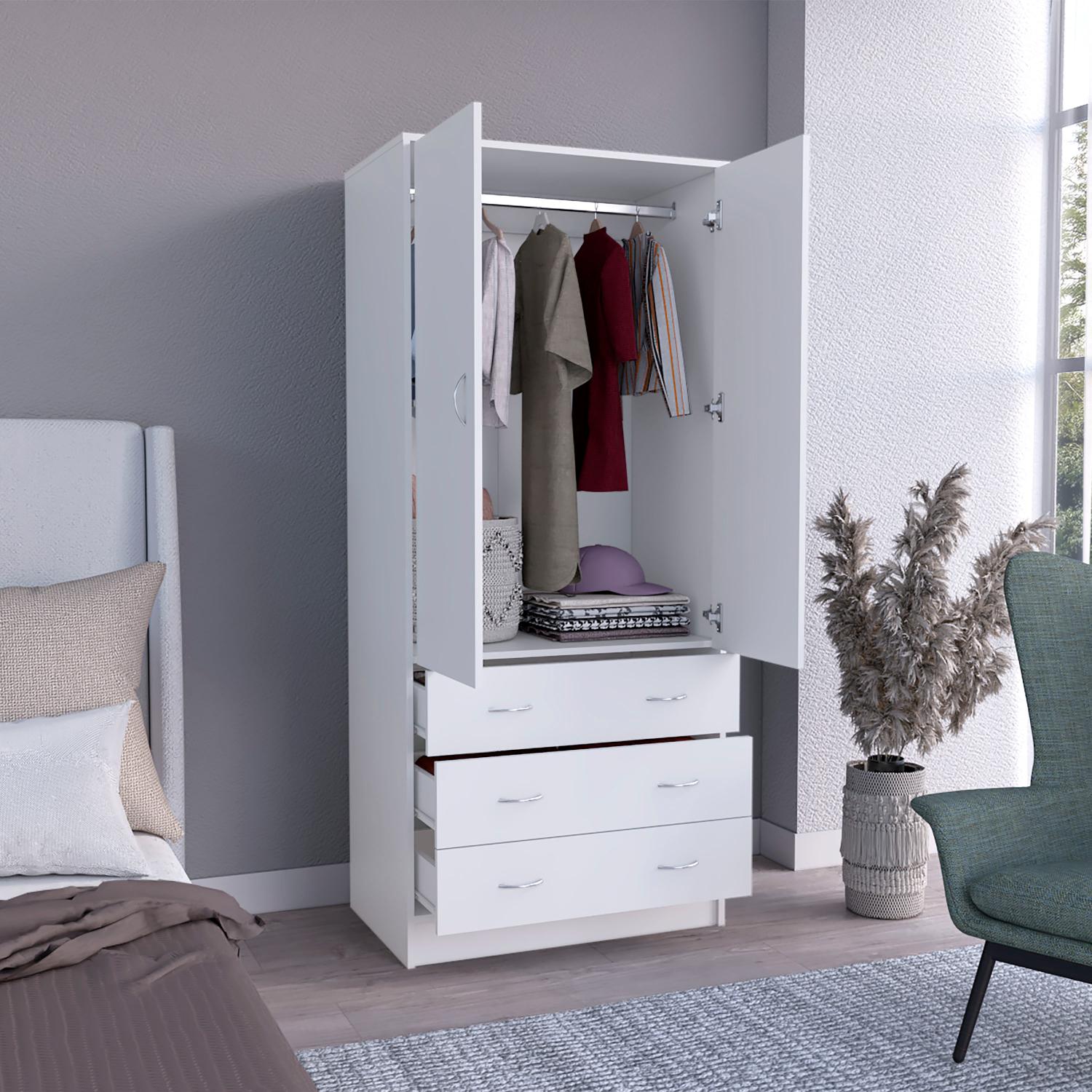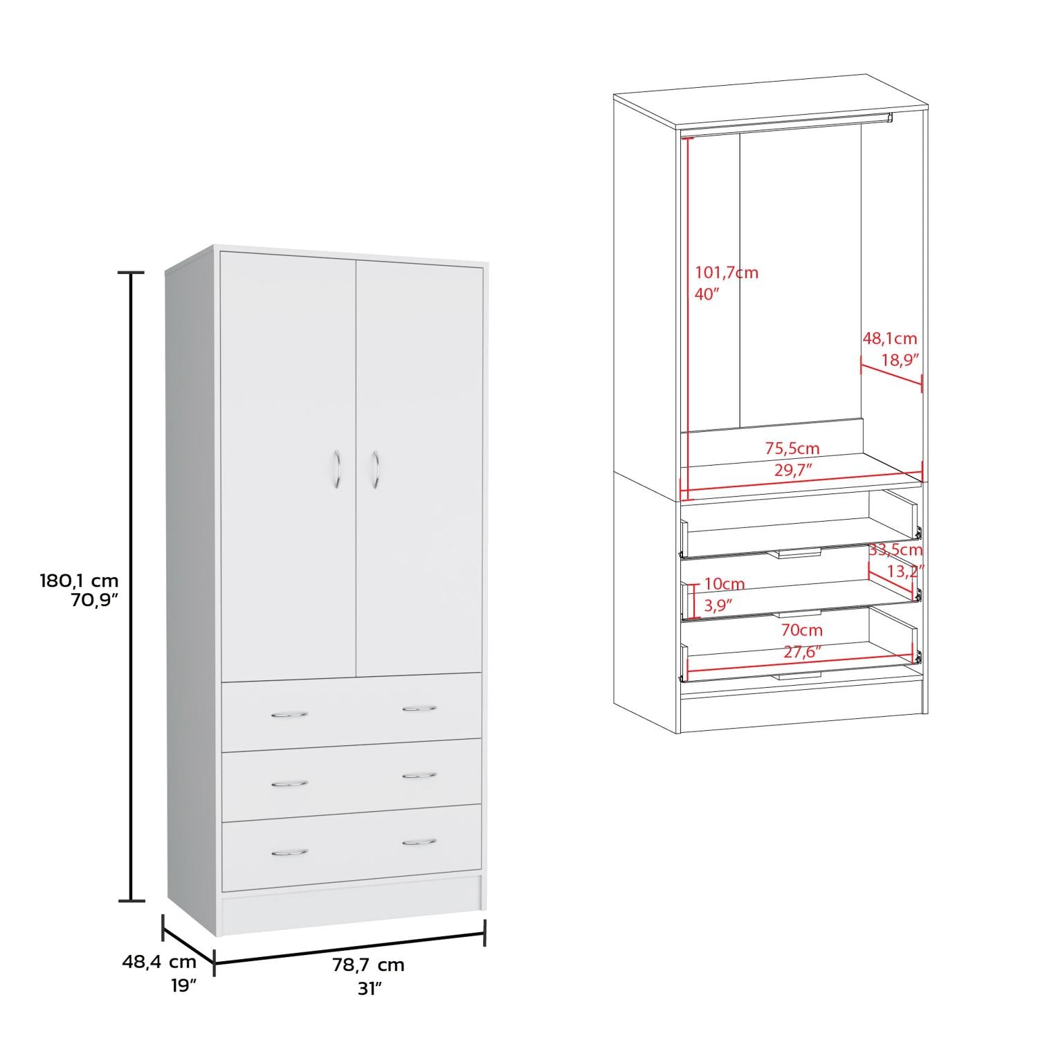 The Taly Armoire is an elegant and functional solution for storing your clothes and accessories. This armoire is made of manufactured wood, which guarantees its durability over time. It is available in two colors: black and white, allowing you to choose the one that best suits your style and decor.Measuring 70.9 "H x 30.9 "Wx 19.0 "D this cabinet offers ample storage space. It features two double doors that give you easy access to your clothing and accessories, as well as two additional drawers to organize your belongings neatly.In addition, the Taly Armoire is equipped with a hanging rod, making it easy to organize and access your hanging garments. Whether you place it in your bedroom, dressing room or any other room, this armoire combines style and functionality to help you keep your clothes organized and in good condition.