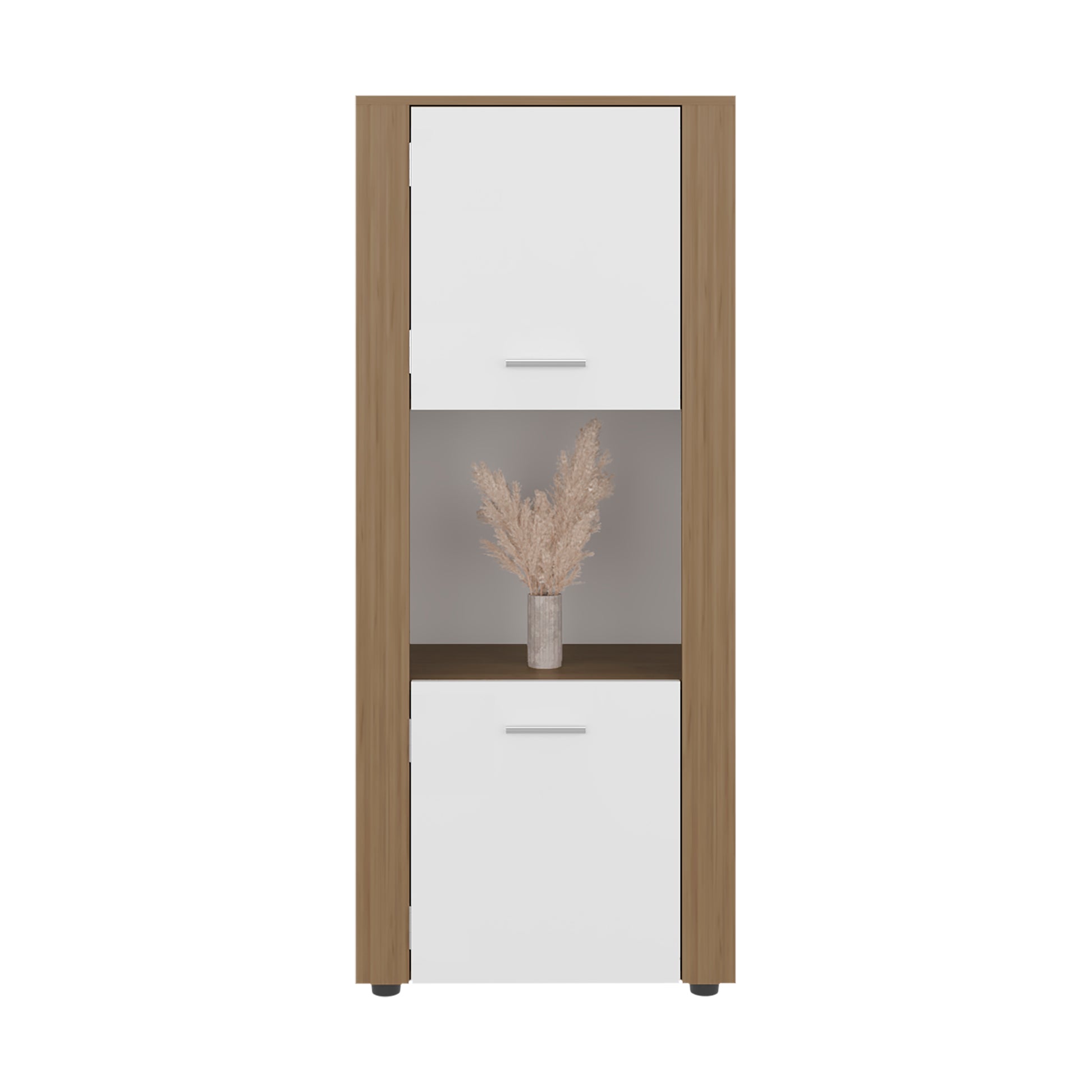 - Open Shelf Configuration. Open shelving provides easy access to stored items while creating a visually light and organized display area.