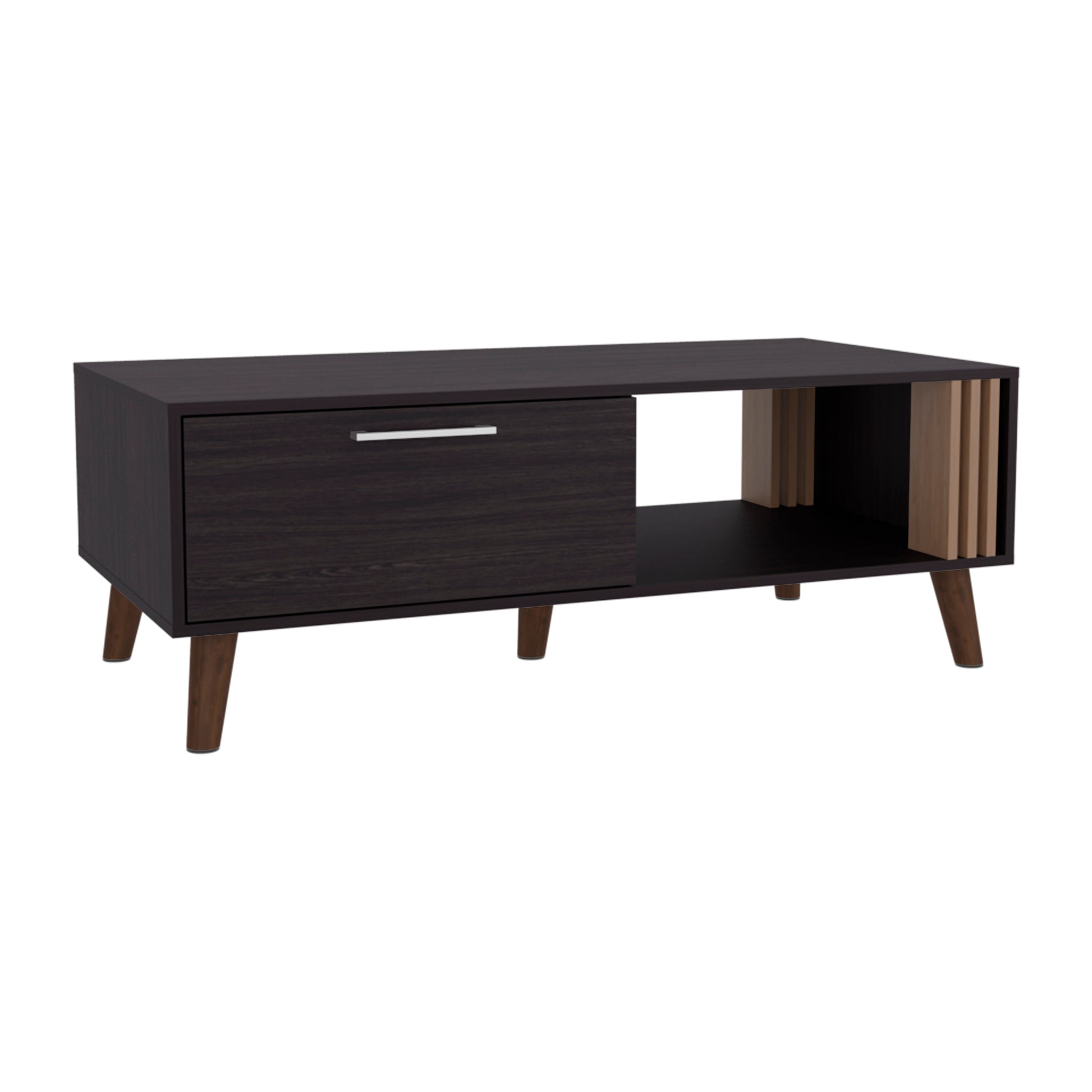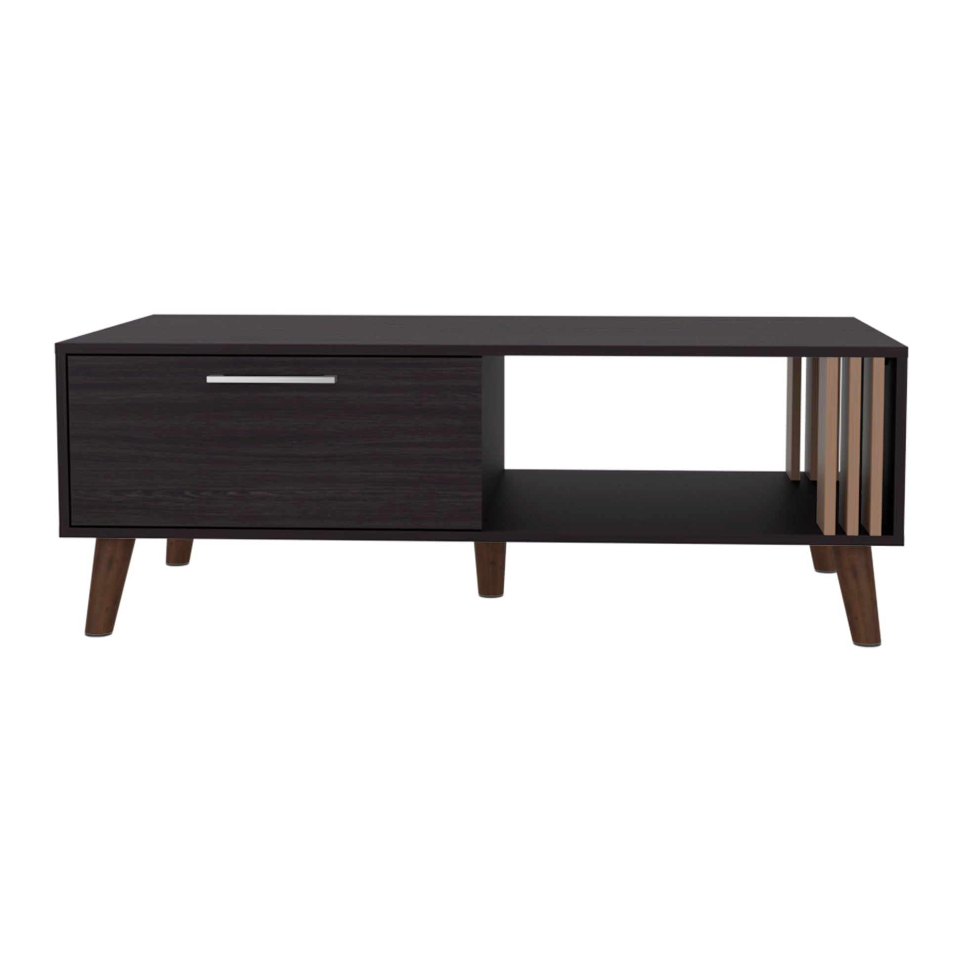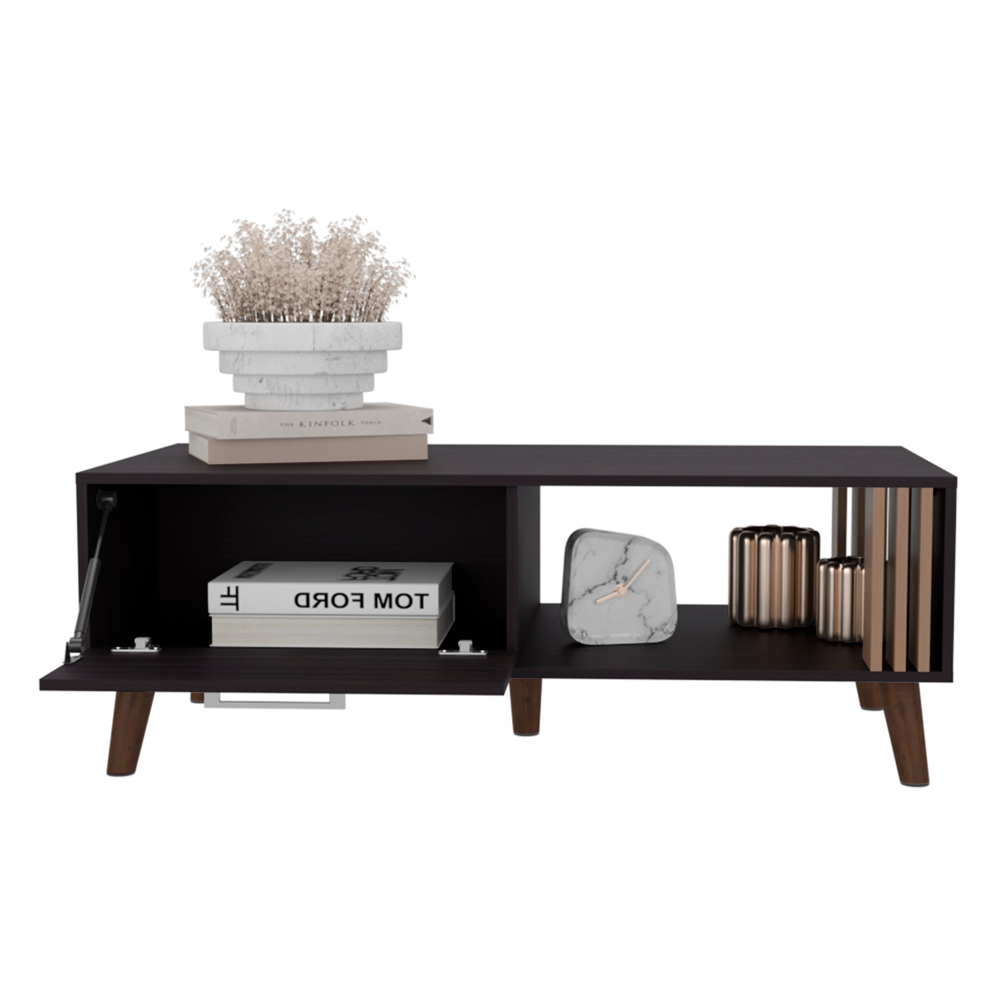 Vance 47" Wide Coffee Table with One Open Shelf and One pull Down Cabinet Door, Living Room, Storage