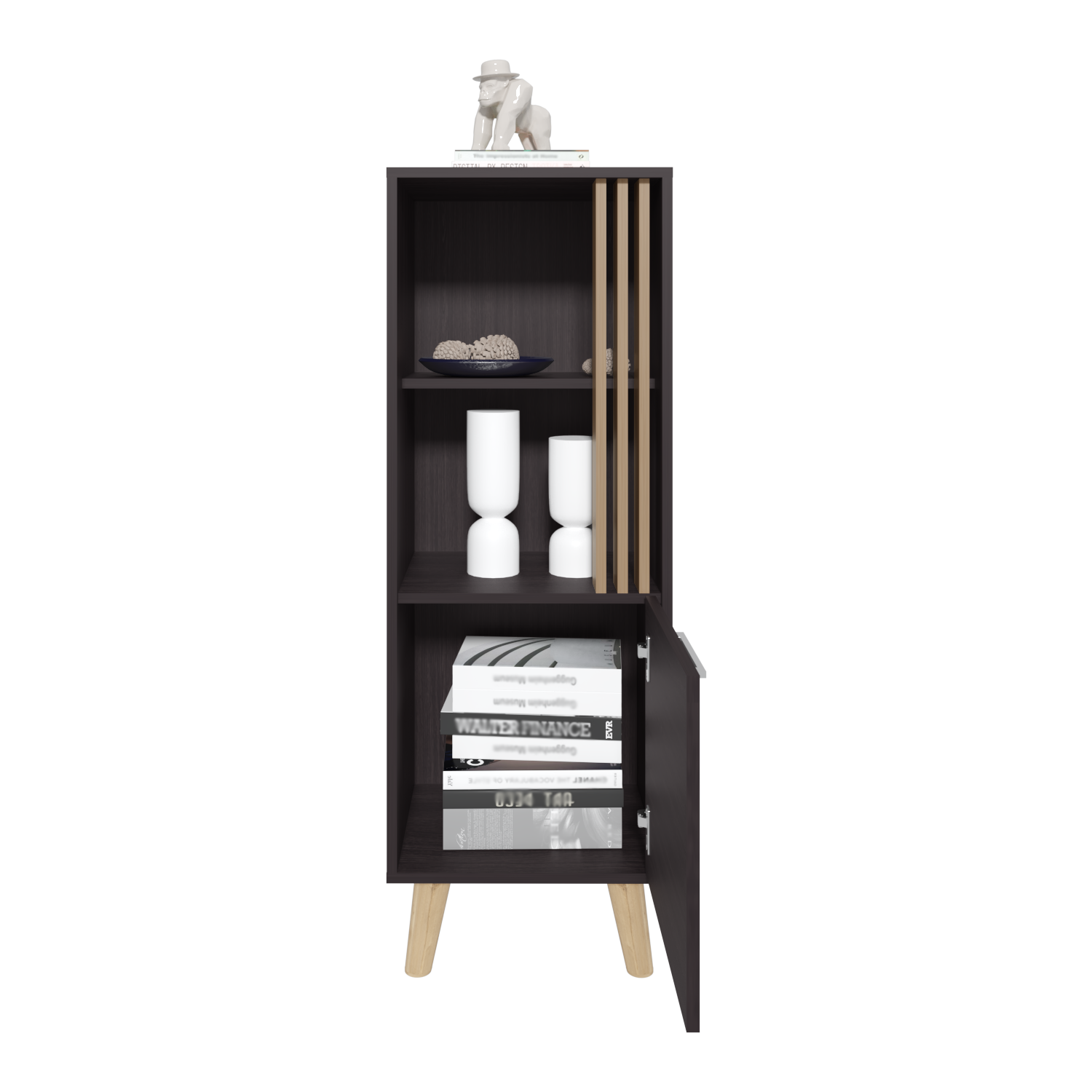 Vance 47" High One Door Cabinet with Two Open Shelves Dark Wengue - Light Oak